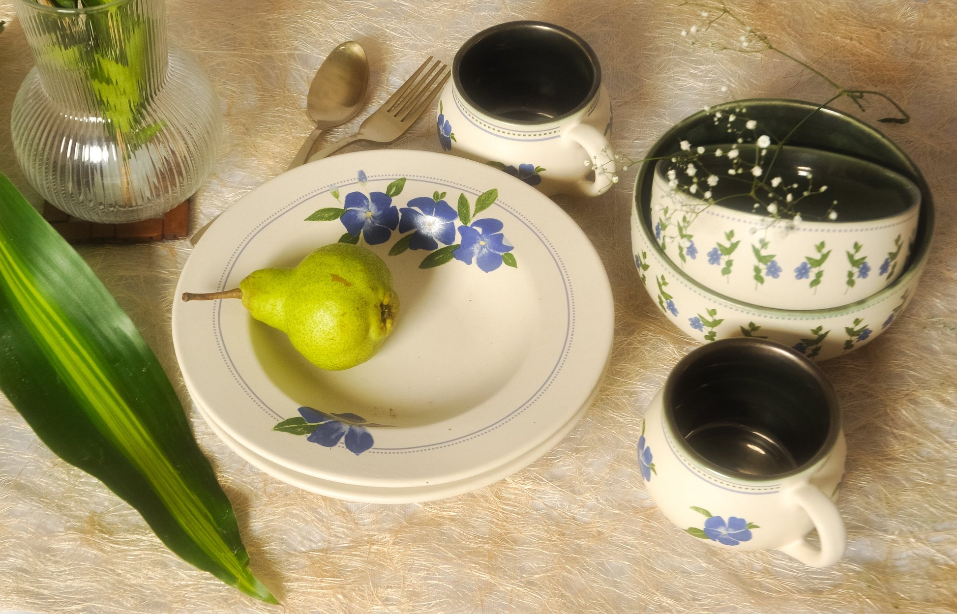 A well-rounded set for everyday dining. It includes 2 pasta plates, 2 soup cups, and serving bowls in two sizes — one for a single portion and one for sharing. From soups to mains, this combo is built to cover an entire meal with ease. Handmade with natural variations, each piece carries its own character, making the set both practical and personal.